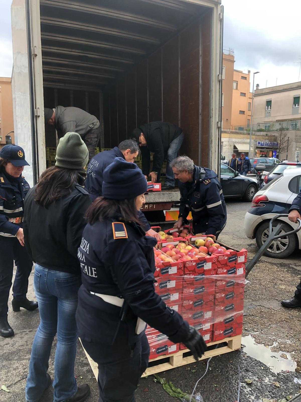 Questa mattina agenti della Polizia Locale di Roma Capitale, Reparto Pics e Gruppo Montemario, sono intervenuti in via Trionfale, dove hanno sequestrato 260 casse di derrate alimentari a una frutteria che vendeva irregolarmente sul marciapiede frutta e verdura.