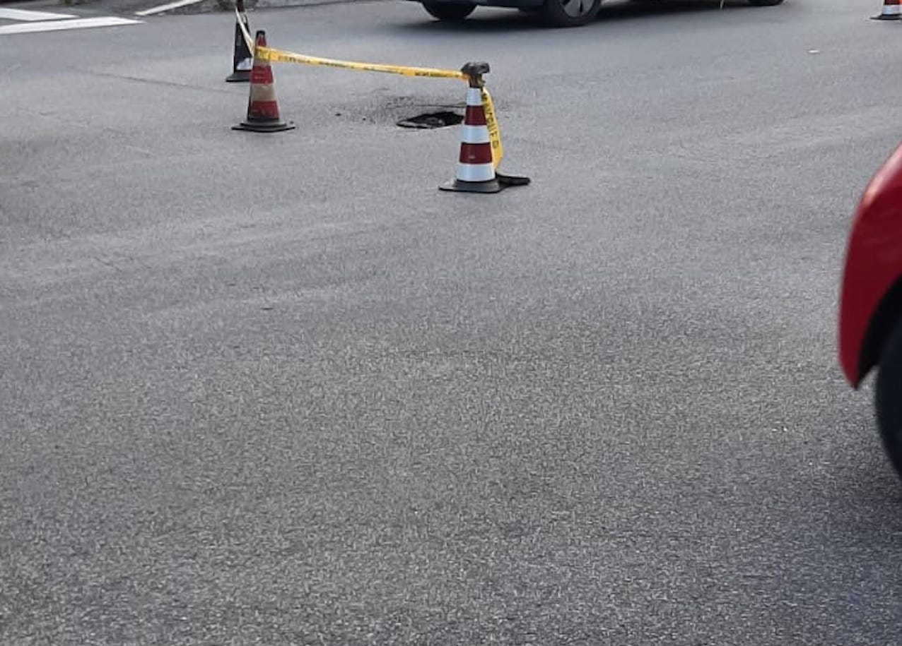 Proprio all’altezza dell’incrocio che si trova in Via Poggio Ameno, nel Municipio VIII, ecco spuntare un’altra buca, e non da poco. I cittadini segnalano il fatto con delle foto. Sarebbero almeno due le buche rilevate e che potrebbero indicare la presenza di problemi persistenti. Sul posto, dopo la segnalazione, sono arrivato immediatamente anche gli agenti della Polizia Municipale che hanno contrassegnato il luogo con il consueto nastro giallo, per evitare che qualcuno possa farsi del male. La speranza è che quel nastro giallo non rappresenti, certo, la soluzione al problema, ma che sia il più temporaneo possibile. Ecco le foto arrivate in redazione: