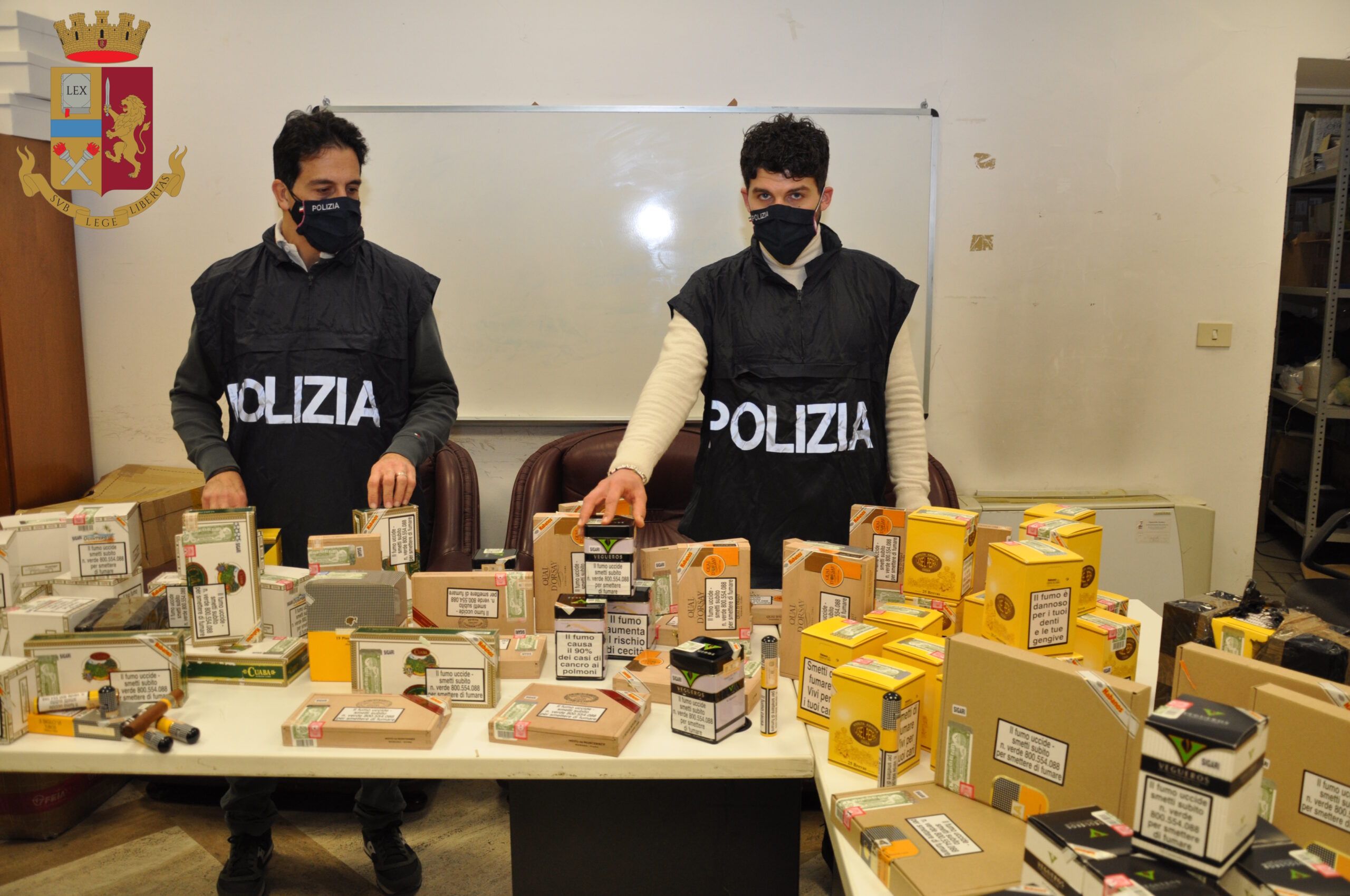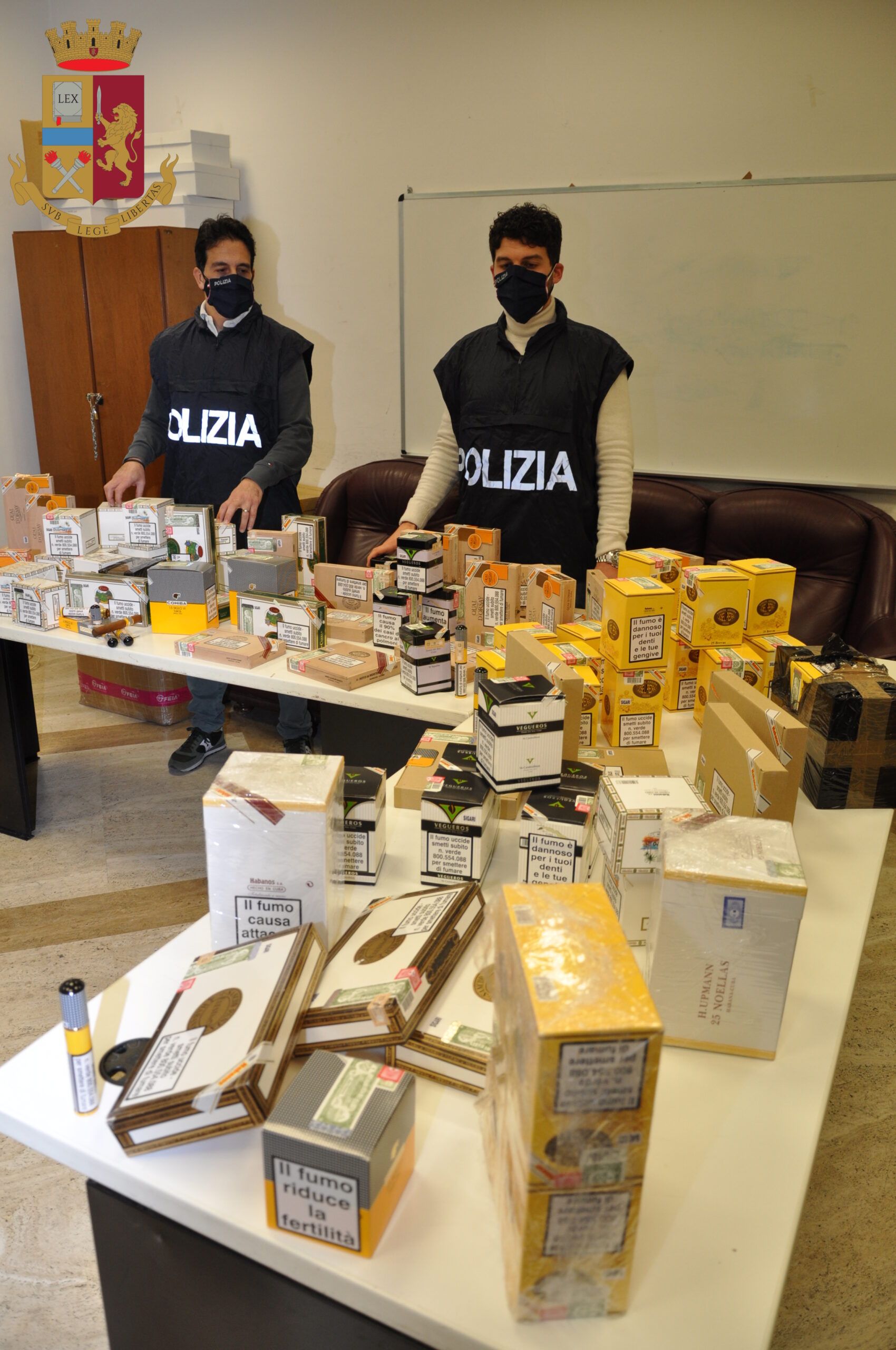I poliziotti, insospettiti dall’insolita frequentazione dell’esercizio da parte di sole persone adulte di sesso maschile e non di mamme con passeggino, hanno svolto un controllo ed hanno trovato circa 2000 sigari, prevalentemente cubani, delle marche più prestigiose, per un totale di circa 15 kg di tabacco: il valore commerciale di vendita al dettaglio, per ogni singolo sigaro, varia dai 30 ai 60 euro.