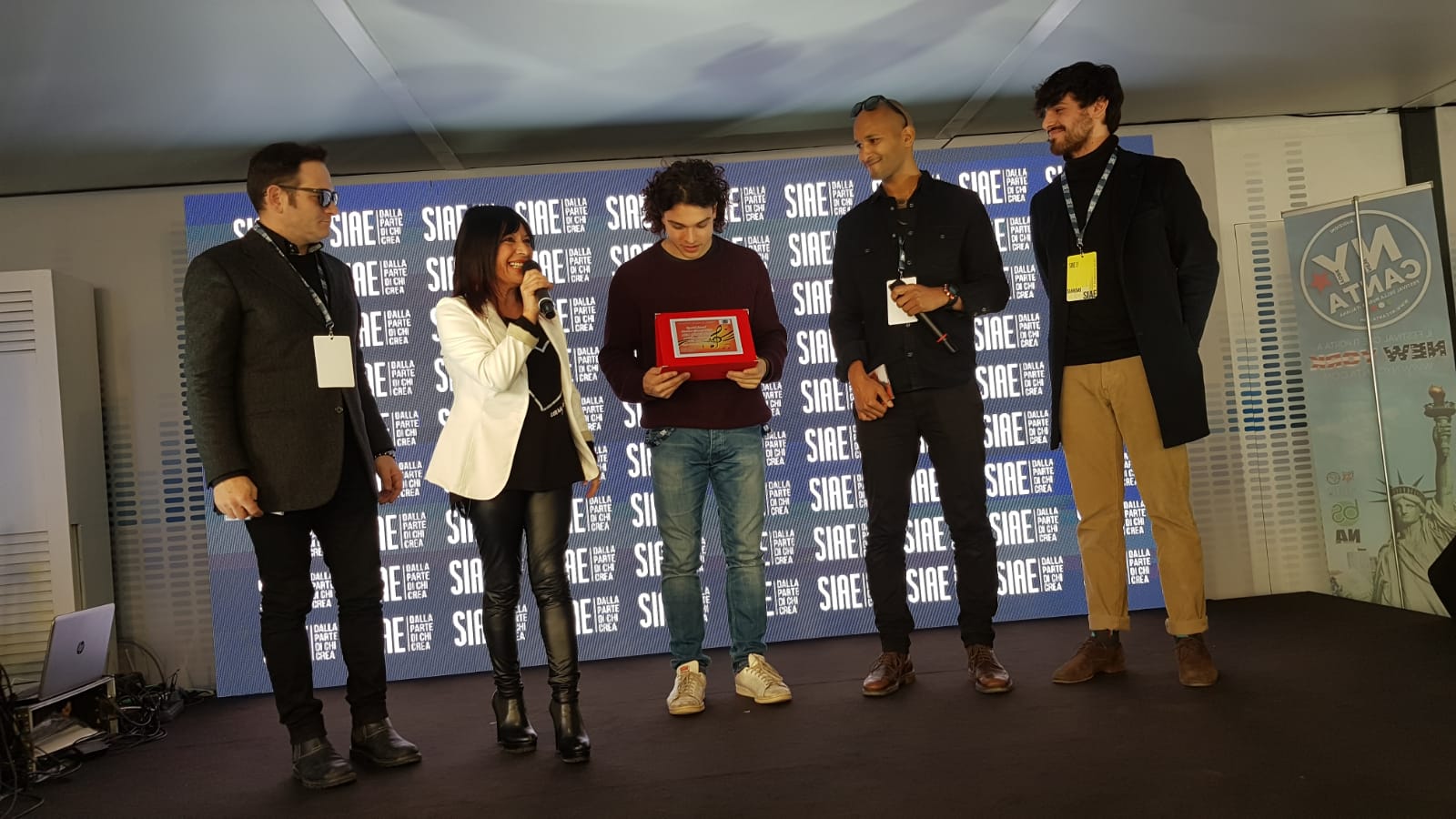 Accolti con un grande applauso dal numeroso pubblico, giornalisti e tv presenti, Francesca Piggianelli con Cesare Rascel hanno consegnato il premio a Leo Gassmann, al regista e produzione, che hanno ringraziato commossi, senza immaginare che la sera stessa sarebbe stato il vincitore nelle nuove proposte del 70° Festival di Sanremo!