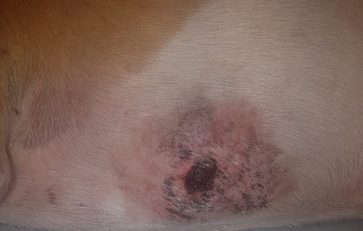 Anche Daisy – una meticcia bianca e nera – attaccata da un cinghiale maschio, ha riportato vistose ferite.