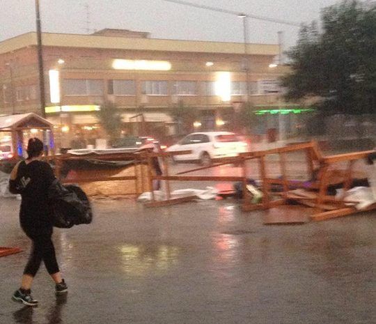 Vento e pioggia hanno spazzato violentemente il litorale, facendo volare di tutto, comprese le bancarelle che si trovano nella centralissima piazza Ungheria.