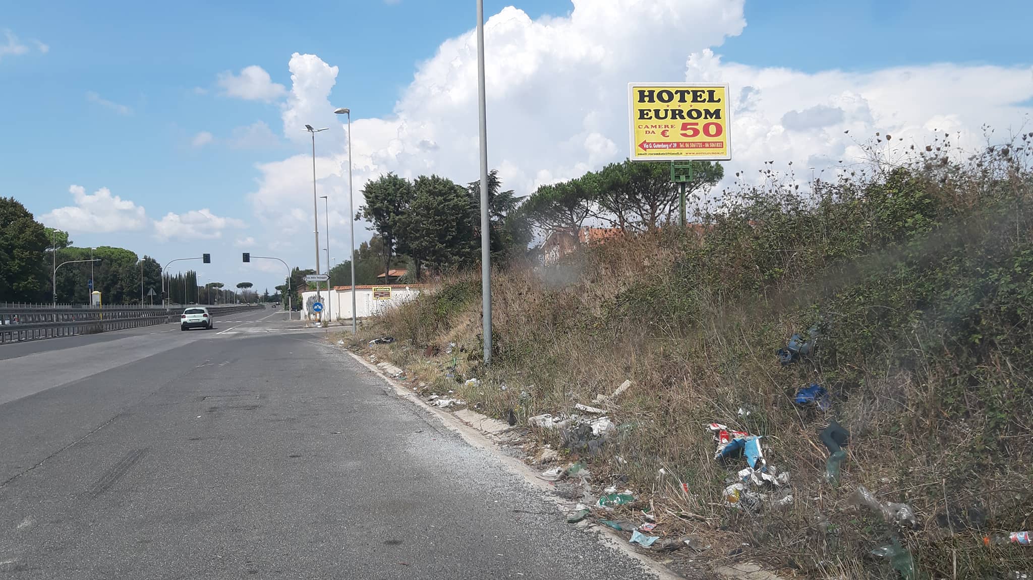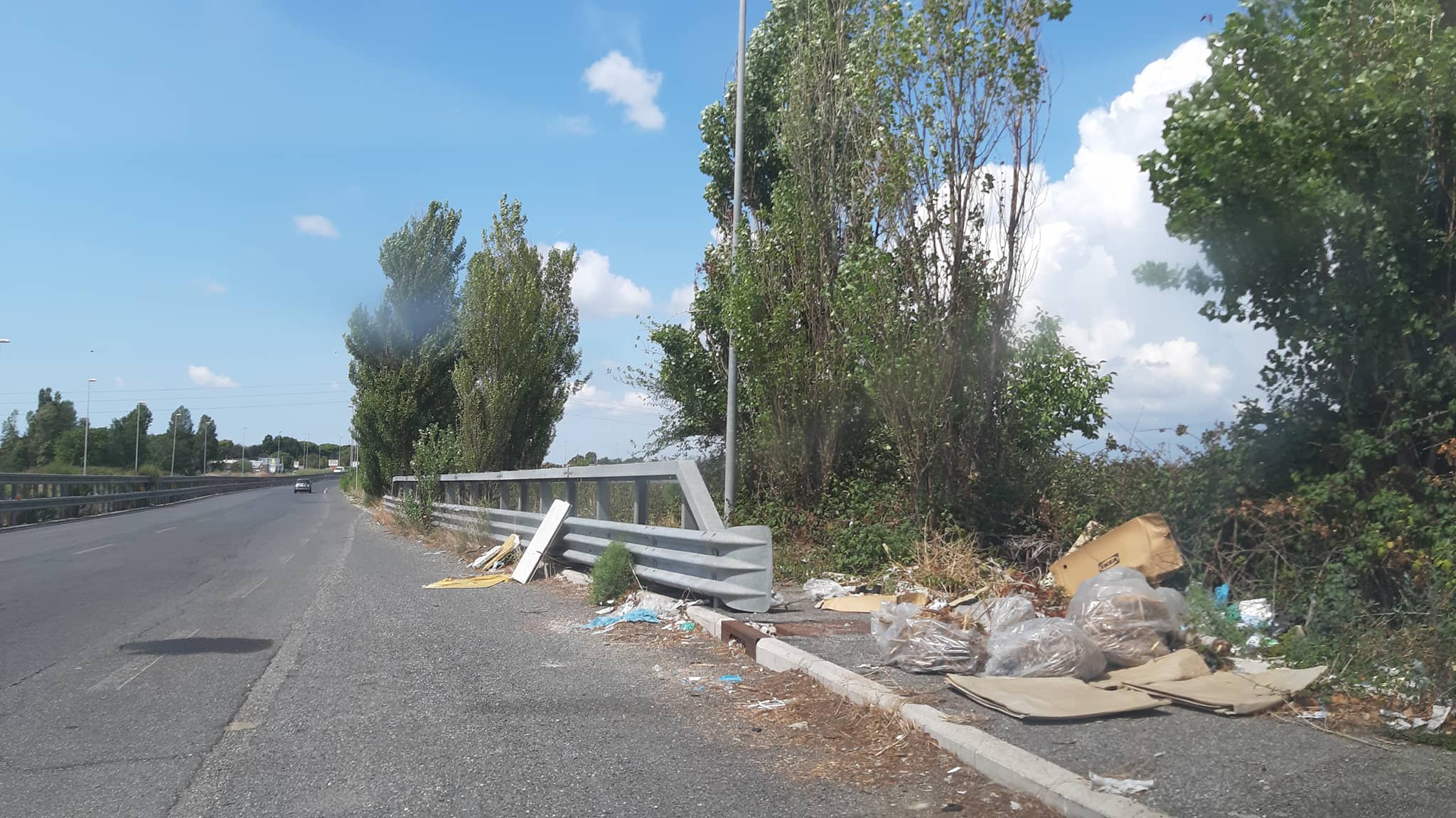 Via Laurentina, da Roma fino a Pomezia tagliano l’erba… e pure i rifiuti: immondizia tutta sparsa al vento (FOTO E VIDEO)