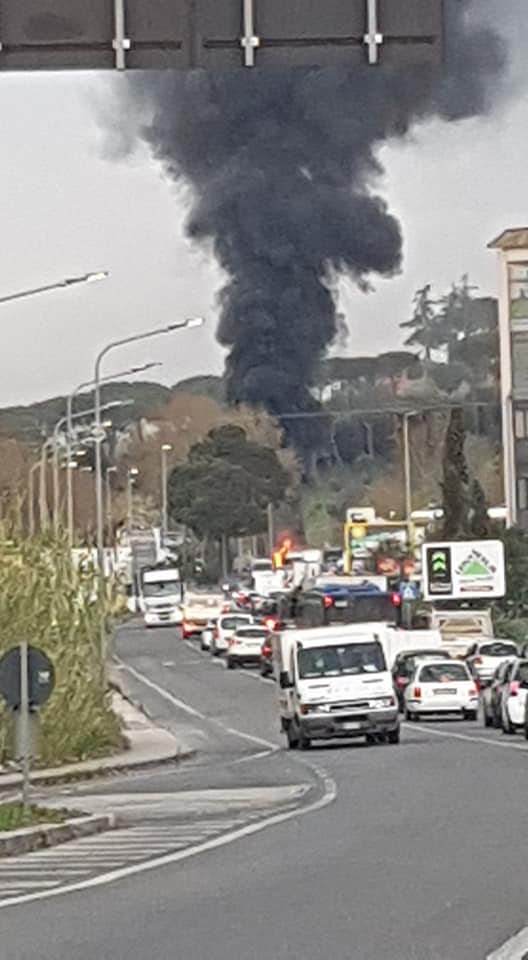 Si è scatenato il panico questa mattina in torno alle 7. In molti hanno notato la lunga colonna di fumo nero, altri hanno visto le fiamme. Un autobus della linea Cotral ha preso fuoco mentre si trovava alla fermata di via Tiburtina all’Albuccione, davanti alla “Pista d’oro”.