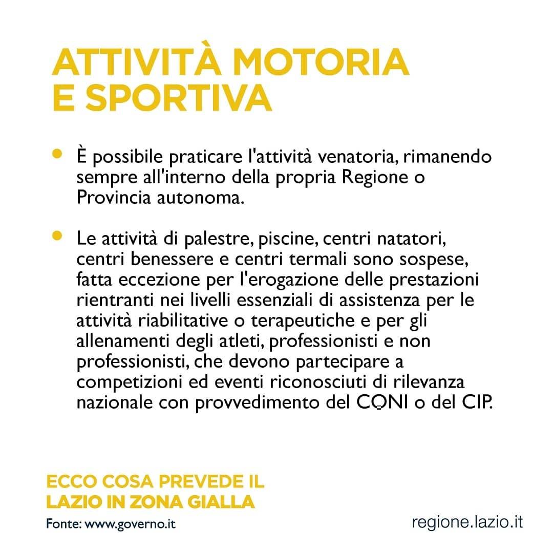 Lazio in zona gialla: attività sportiva, palestre e piscine