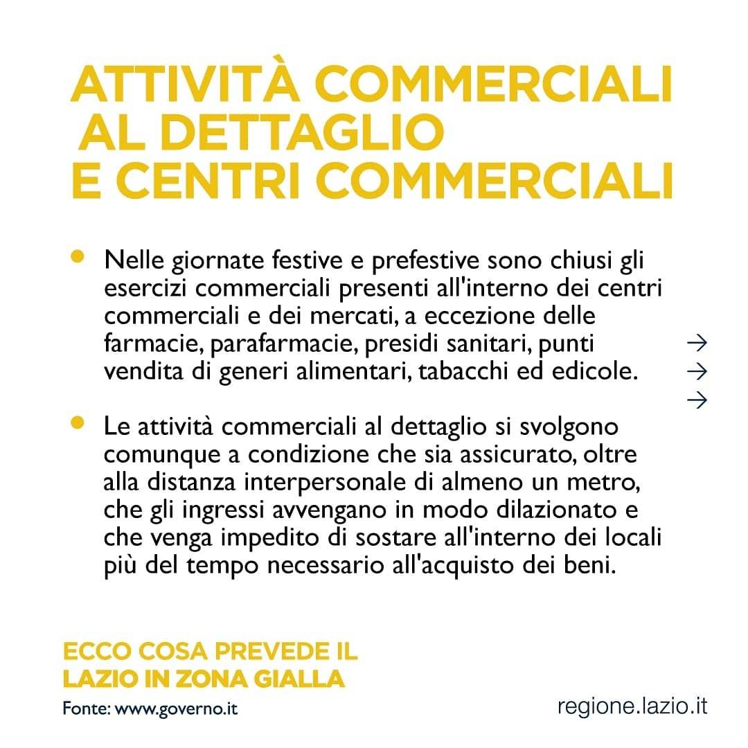 Leggi anche: Centri commerciali a Roma aperti o chiusi nel weekend? Cosa cambia con la zona gialla nel Lazio